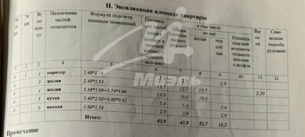 Общая: 43,9 м2